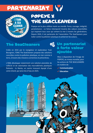 Le partenariat a été négocié par l'agent français de King Features, M.J.A. Licensing, qui aura en charge la mise en place de contrats de cobranding Popeye x The SeaCleaners dans différentes catégories de produits (vêtements, accessoires, décoration, etc.). Une partie des recettes sera ensuite reversée à l’association The SeaCleaners.